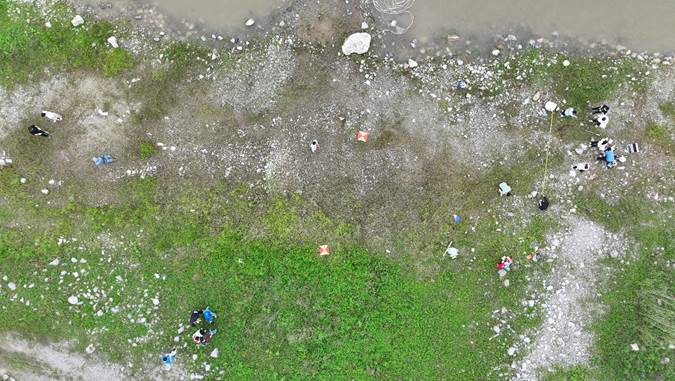 图2 生态修复团队师生现场调研(无人机航拍照片)
