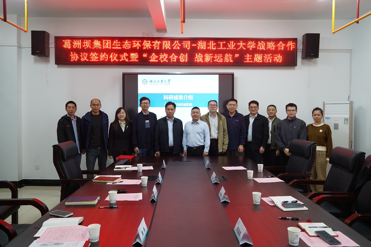 10月31日,葛洲坝集团生态环保有限公司(以下简称“葛洲坝生态环保公司”)党委委员、副总经理杨火冰一行莅临湖北工业大学考察交流,并出席校企战略合作协议签约仪式。湖北工业大学科学技术发展研究院院长胡心彬出席仪式,土木建筑与环境学院院长马强致欢迎辞。葛洲坝生态环保公司党委委员、副总经理刘运东,总工程师安磊,副总工程师、科技与信息化事业部总经理吴磊,科技与信息化事业部副总经理郭沨,以及湖北工业大学土木建筑与环境学院相关专业骨干教师等共同参加了签约仪式及相关交流活动。签约仪式由土木建筑与环境学院副院长李祝主持。