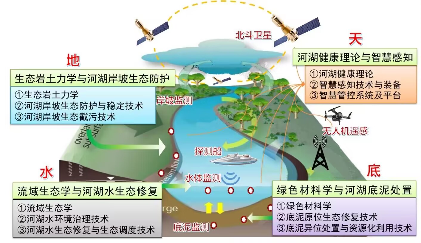 本实验室重点开展河湖健康理论与智慧感知、河湖岸坡生态防护、河湖水生态修复以及河湖底泥处置的理论与技术研究,形成系统的理论方法及技术体系,为我国河湖生态保护与修复提供理论及技术支撑。主要研究包括4方向: